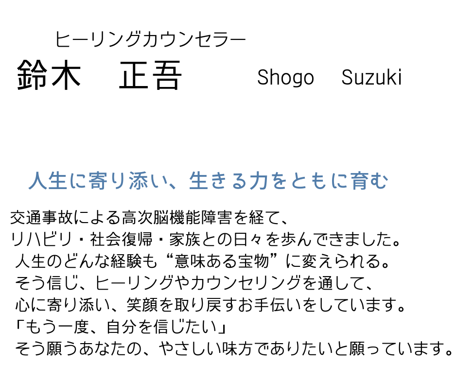 人生を自分らしく歩むための伴走者でありたいと思っています。